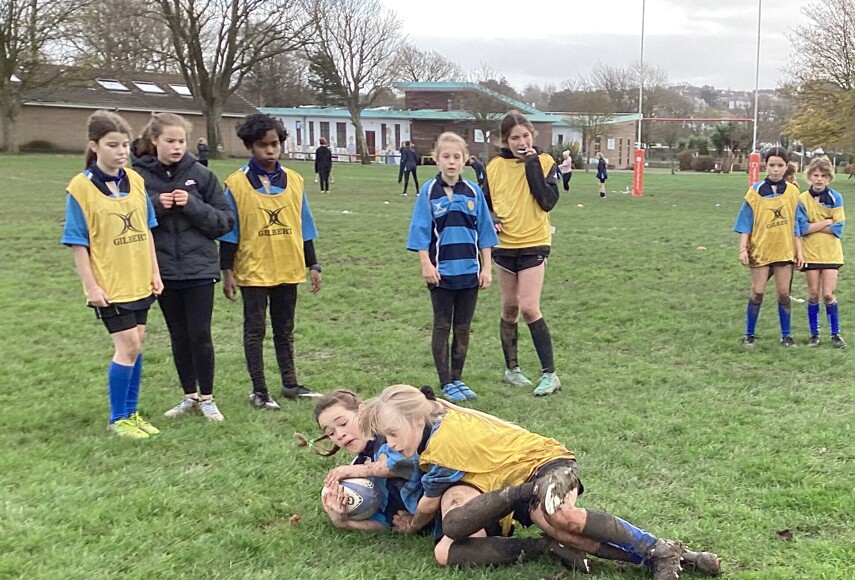 There were some very exciting moments of rugby involving our Pilton players; some had some great runs with the ball through lots of the opposition, often resulting in a try, others made some quick passes to find players in space, whilst some performed some crucial tackles to stop the opposition from advancing. The girls all did their school proud and fully embraced the experience especially the mud!