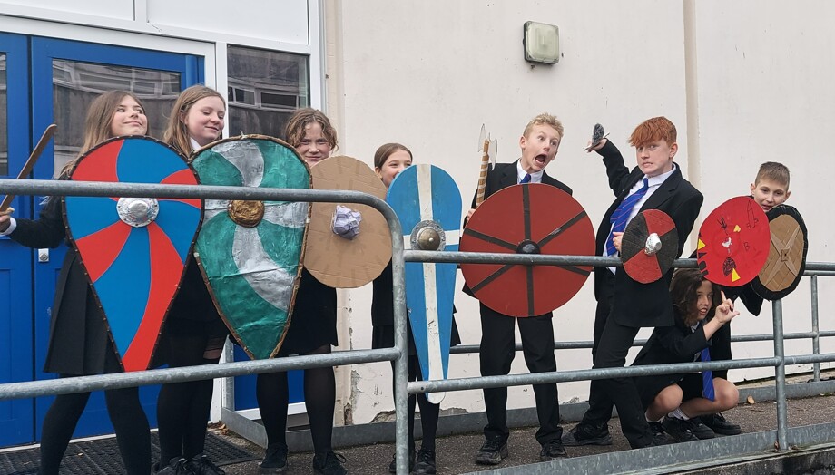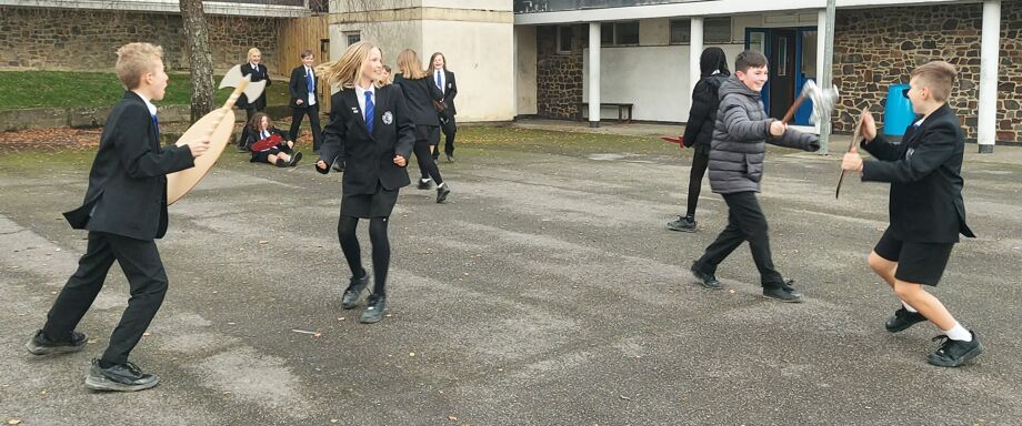 Year 7 History students embraced the spirit of Mrs Mugglestone's annual reenactment of the Battle of Hastings with enthusiasm this week, assisted by a motley array of homemade shields and weapons, some very dubious acting skills and a lot of shouting...