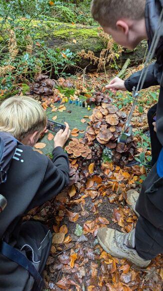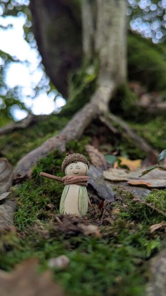 The group immersed themselves in nature during their third session in Chapel Woods. They made a sound map, identified birds from birdsong using the Merlin app and even managed to charmed a robin down from a tree! They then embarked on a photography project, taking pictures of their decorated wooden figures hanging out in nature, before relaxing by the water from the natural spring.